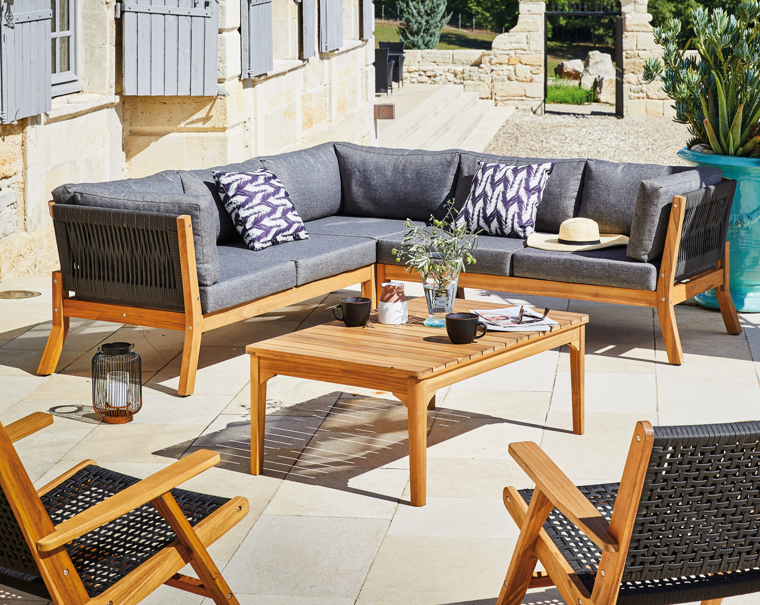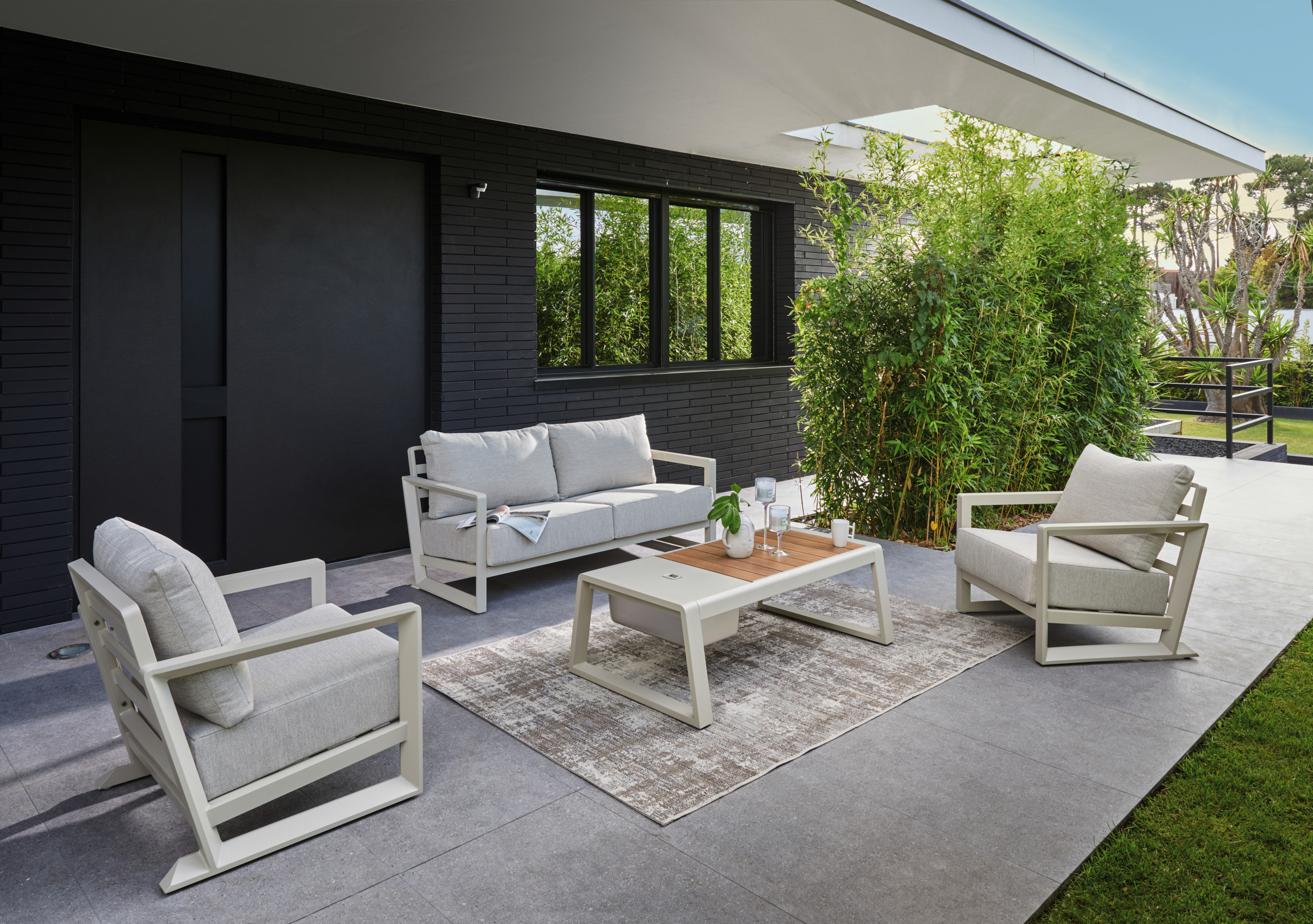 Les différentes matières sauront vous séduire pour créer un espace qui vous ressemble : Aluminium, inox, acier, bois, résine tressée, textilène, verre trempé...